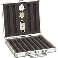 It states that you can hold 12 cigars in this humidor. That was not my experience. Note the location of the cutter, hygrometer and humidification device. Those lay almost directly over 2 of the cigars. The foam underneath of the hygrometer was deformed by being packed in so close. The solution here is to remove those devices and carry them seperately. I personally use heartfelt beads in a cylindrical container to maintain the humidity.