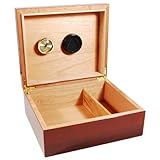 I decided not to spend a bundle on my first humidor because I'm not at the level of an everyday smoker, I just enjoy them occasionally so this was a perfect fit for me and my small arsenal of cigars. The humidor is made of beautiful cherrywood, and it includes a humidifier and a humidity gauge, so it has everything needed for a starter humidor. I get compliments on it all the time, and it was definately worth it for the price.