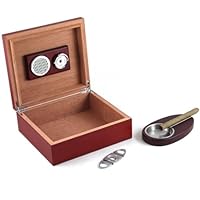I got my fiance a cigar of the month club membership for a Xmas gift. I thought it might be something relaxing for him. But he didn't have anything to keep the cigars in so I bought this too. He loooves it. I also bought a digital hygrometer. The analog one that comes with this one may be good but I thought digital may be more accurate. Also got him a leather 2 finger case and a triple flame lighter. Bought humidifier liquid and zippo fluid too. He's new to this so I had to be as inclusive as I could. This little set is great, just isn't all inclusive in itself.